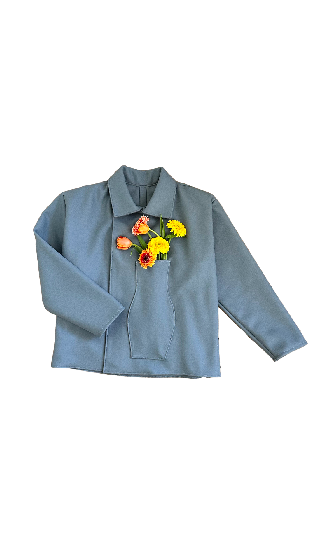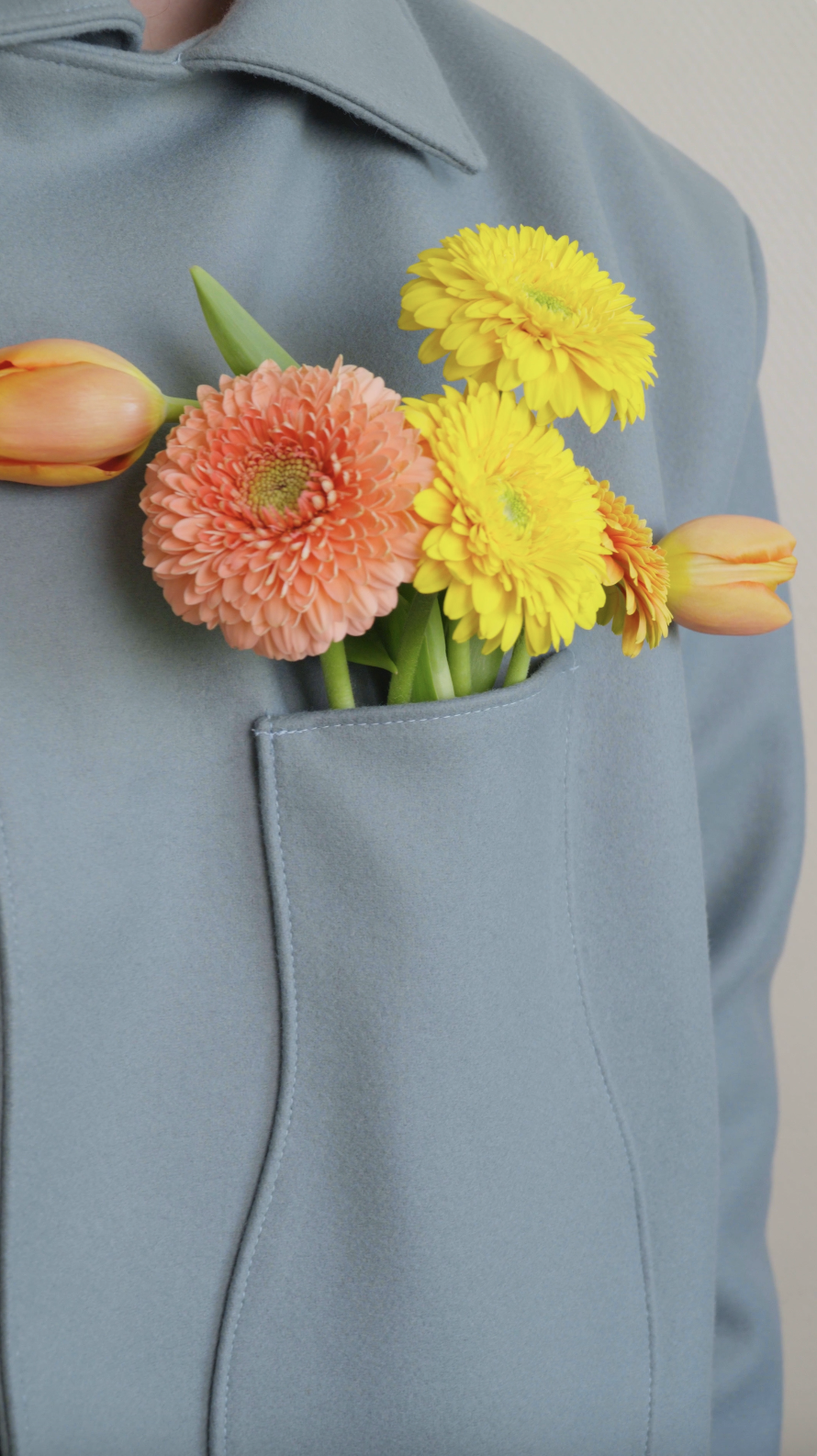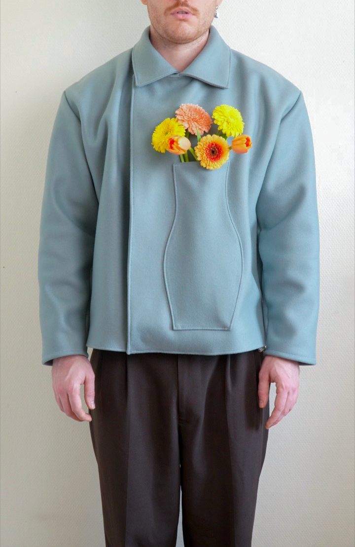 this coat has a vase sewn onto it so you can carry real flowers with you.